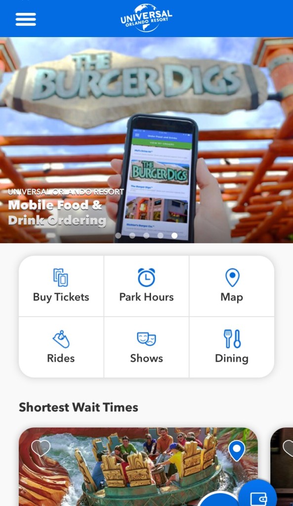 ordering on the app for pick up. You can even add your wallet to the app for paying easy with your phone and you and purchase tickets Express passes Merchandise and get all the best deals on the app . It also has a Map of cityWalk and all three parks so you can know your way around easily Plus you can even take a photo and write down your parking spot in the parking garage so you can easily remember where you parked after a long day of having fun you can awesome