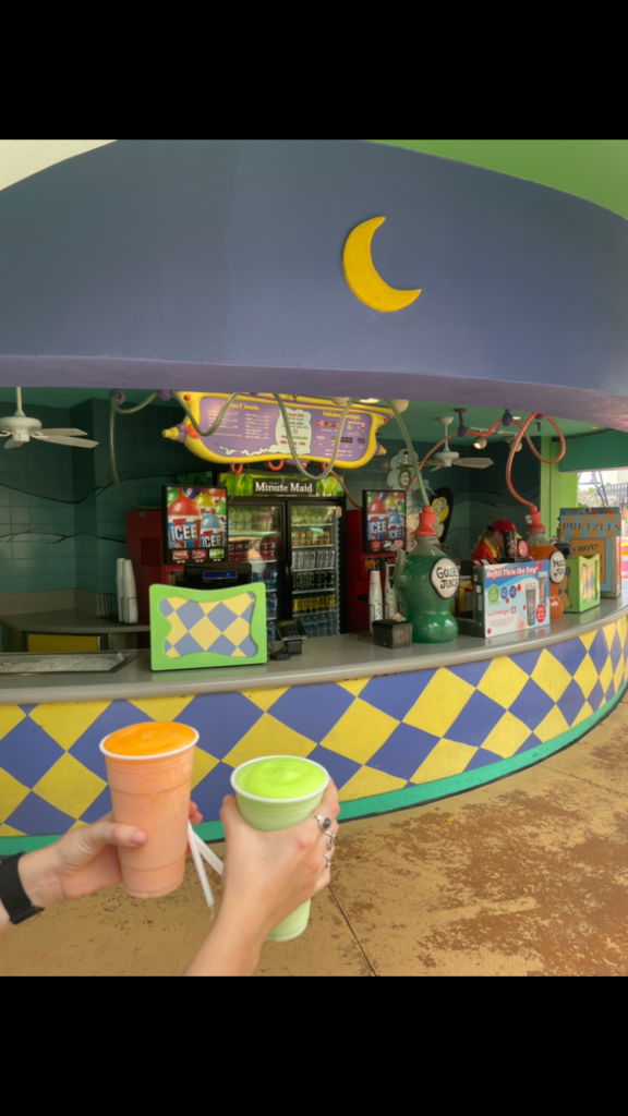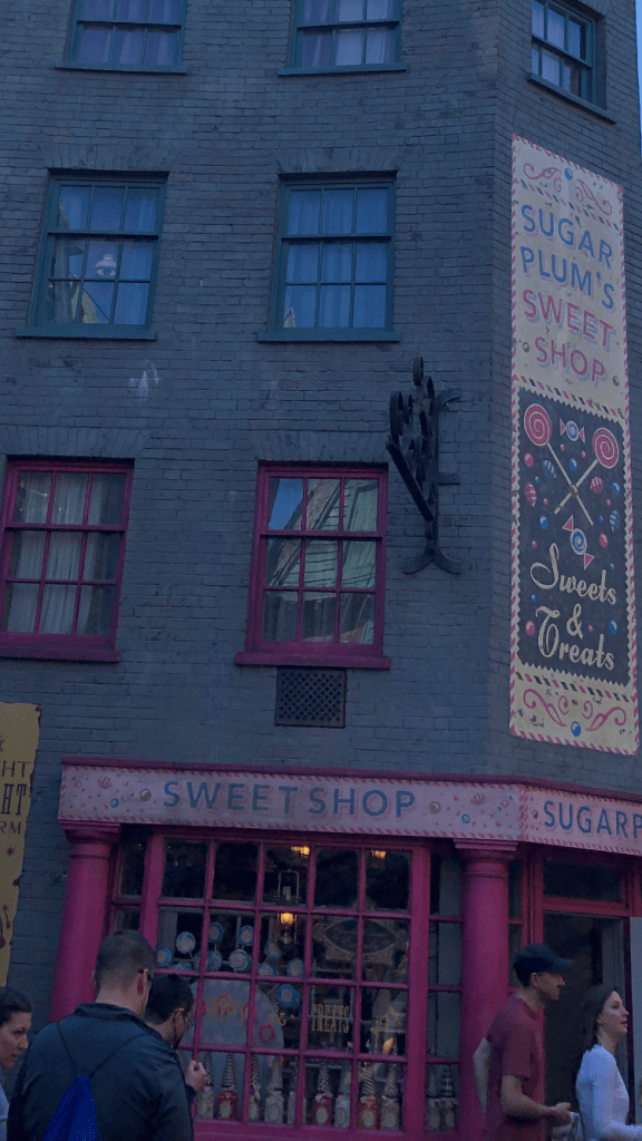 If you are a ice cream lover even if you are not a big Harry Potter fan you should to a visit into Diagon Alley and go to Florean Fortescue’s Ice-Cream Parlour for wizard world ice cream my favorite is the strawberry peanut butter! But they have so many unique flavors to pick like chocolate chili Apple Crumble Earl Grey and lavender sticky Toffee pudding butterbeer and more plus you can mix and Match flavors and for 10 dollars they give you a souvenir cup !